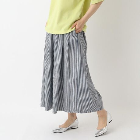 デニム生地とヒッコリーストライプ2種3柄展開で、どんなトップスにも合わせやすいアイテムとなっています。