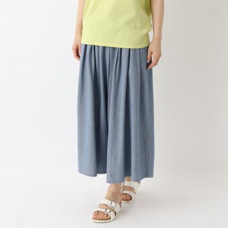 デニム生地とヒッコリーストライプ2種3柄展開で、どんなトップスにも合わせやすいアイテムとなっています。