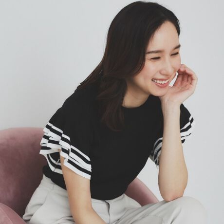 ・ボーダー柄の配色は、カジュアルさと上品さを兼ね備え、幅広いシーンに適応。