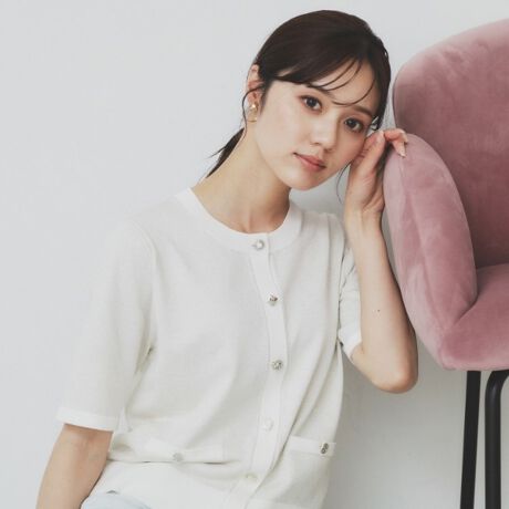 ・バイカラーの洗練された配色が魅力的な半袖ニットカーディガンです。