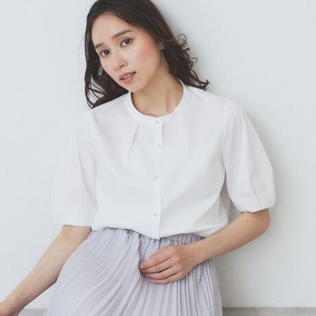 ・控えめなパフスリーブが二の腕を優しくカバーし、気軽に着こなしやすいデザインです。