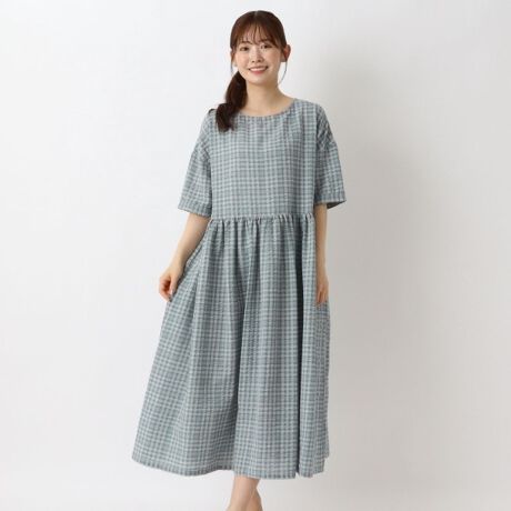 【リンネル7月号掲載】サッカー ウエストギャザーボックスワンピース