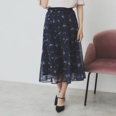 軽やかなシアー楊柳にのせたフラワー柄が映えるフレアスカート