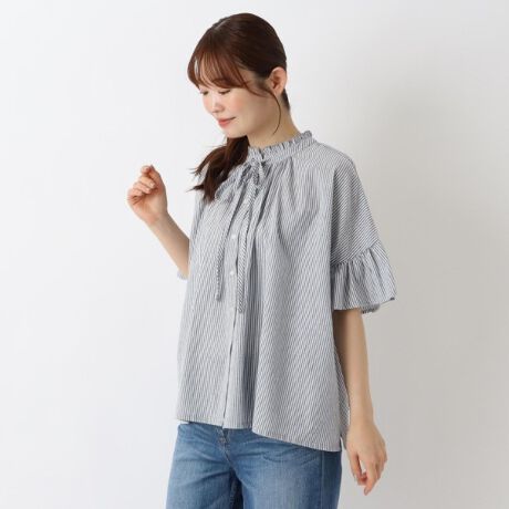 襟フリルリボンブラウス