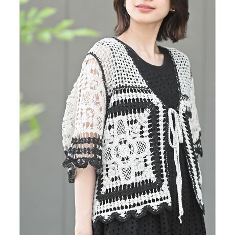 透け感がさわやかなスタイリングに仕上げてくれるクロシェ風カーデ。