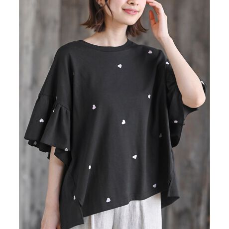 フレアースリーブ刺繍Tシャツ