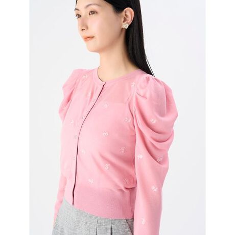 ドット見えする花柄刺繍を施したシア―カーディガン。