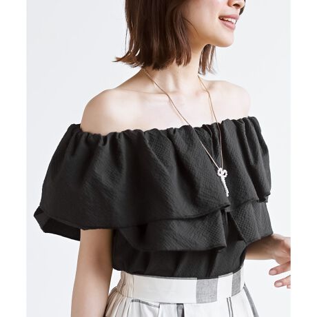 肩まで下げてオフショルとしてもお楽しみいただける2WAY。