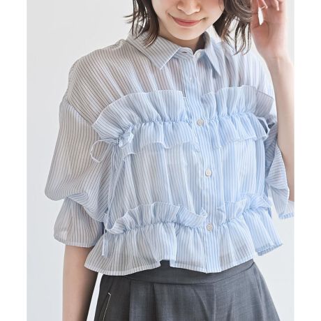 透け感とストライプの清涼感たっぷりなシャツブラウス。