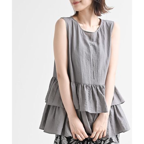 麻調シアーフリルノースリブラウス