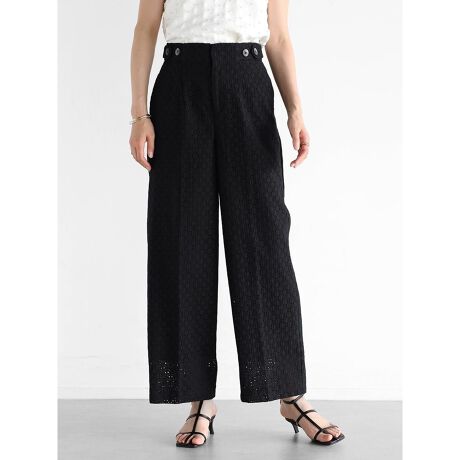 タイルのような幾何柄を贅沢に刺繍したエンブロイダリーレースパンツ。