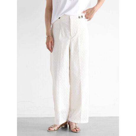 タイルのような幾何柄を贅沢に刺繍したエンブロイダリーレースパンツ。