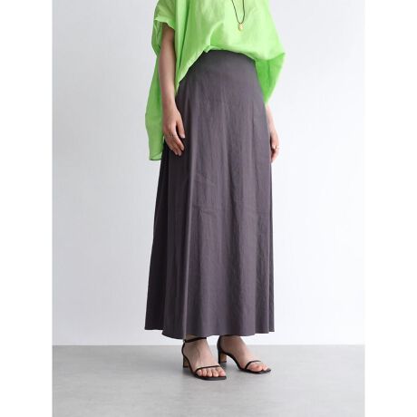分量感がありつつも広がりすぎず、綺麗なソフトフレアシルエットを形作るスカート。すっきりとした長めの丈感とぴったりとしすぎないシルエットで抜けを出し大人のバランスを叶えてくれます。デザイン性がありつつ、ウエストゴムで着心地の良さも実現。セットアップではもちろん、シンプルなトップスと合わせることで軽やかなスタイルに仕上がります。