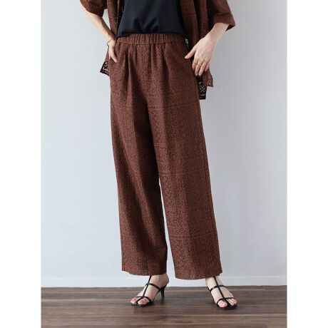 クラフト感と繊細さを併せ持つジオメトリックレースが魅力のワイドパンツ。