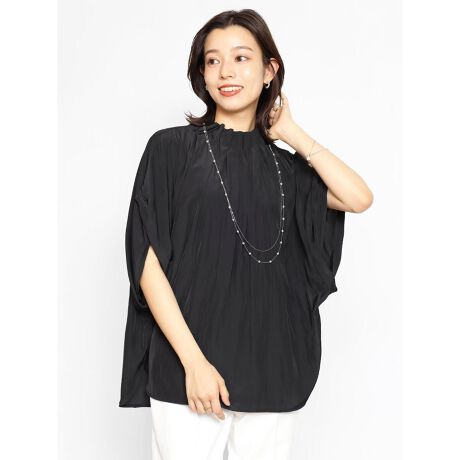 ネックラインにたっぷりとギャザーを施し、流れるようなドレープが美しいボリュームブラウス。