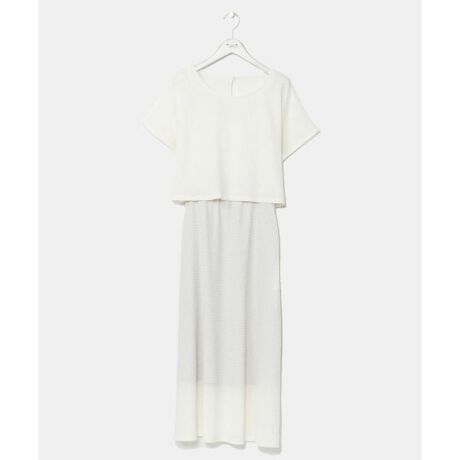 爽やかに着られるトップスとワンピースのセット。シアーサッカー生地で軽やかな素材。スカート部分には裏地も付いていて安心。トップスとワンピースを別々で着ることも可能です。