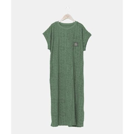 [型番:4CH-5205-2025]涼しげなオリジナル柄のパイル生地を使用したワンピース。リラックス感のある雰囲気。サイドポケット付き。