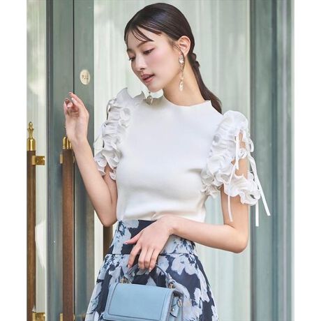 【女心をくすぐるフェミニンな要素をギュッと込めた、ショルダーコンシャスな着映えニットプルオーバー】【Point】・立体的なプリーツ加工がされたフリル×リボンを掛け合わせた、ショルダーコンシャスなニットプルオーバー。・さりげない肌見せで、品の良い大人な抜け感に仕上げました。・レーヨンを多く含んだ柔らかくソフトな肌触りで、ストレスフリーな着心地のニットプルオーバーです。ケア方法:ドライクリーニング透け感:なし(オフのみ多少あり)裏地:なし伸縮性:あり光沢感:なし生地の厚さ:薄手
