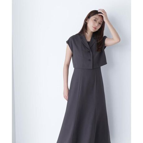 ショートジャケットとワンピースがSETになったトレンドのアンサンブルデザインです。ジャケットのVネックとワンピースのスクエアネックのレイヤードが今年らしくておすすめ。ワンピースは単品使いもしやすいので、お持ちのジャケットやカーディガン合わせも楽しめます。<素材>サラリとしたタッチの合繊素材を使用。少しメランジ調の表面が夏見えする素材感です。<詳細>仕様・ジャケットは前ボタン、ワンピースは後ろファスナー裏地・ジャケットはなし、ワンピースはあり透け感・なし / 光沢・なし / 伸縮性・ややあり生地の厚さ・普通※モデルの着用画像の場合、光の当たり具合により、実際の色味と異なって見えることがございます。色味は、商品単体の画像をご参照ください。