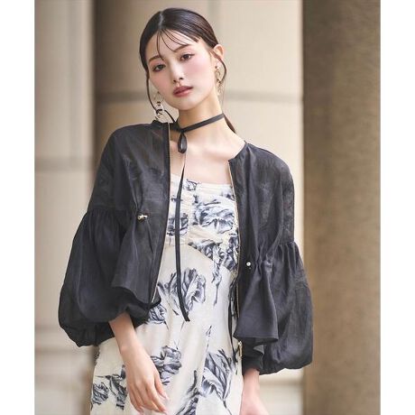 【夏の軽量羽織りとして活躍すること間違いなしのボリュームスリーブドロストブルゾン】【Point】・羽織るだけで今っぽい着こなしが楽しめる、ボリュームスリーブシアーブルゾン。・ウエストの紐は体型やお好みに合わせて絞り具合を調節いただけます。・さらっとしたシアー素材が気温の高い日でも羽織りやすく、今から秋まで長く活躍する一着です。ケア方法:手洗い可能透け感:あり裏地:なし伸縮性:なし光沢感:なし生地の厚さ:薄手