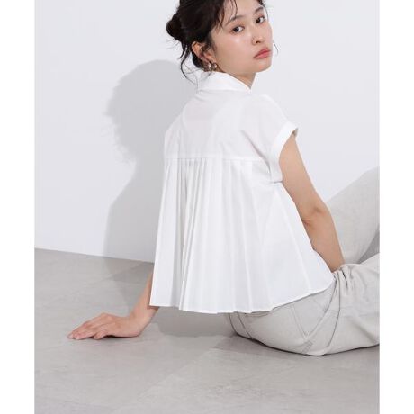 前はシンプルなシャツで、後ろはバックプリーツを効かせたデザイン。