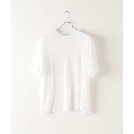 A T-shirt made of a cotton fabric with a gentle puffy touch and a transparent cotton fabric woven in a gauze style made of thin strong twisted yarn with fluff removed. One piece that you can enjoy a layered style that takes advantage of the transparency.