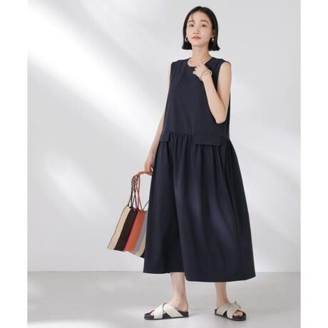 女性らしさとカジュアル感が夏にぴったりなノースリーブワンピース。しっかりと着丈もあるので、一枚でサラッと着られるアイテム。シワになりにくく、洗濯機洗いが可能なのも嬉しいポイントです!