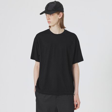 ポンチ素材とチュールレースをコンビネーションにした半袖Tシャツ