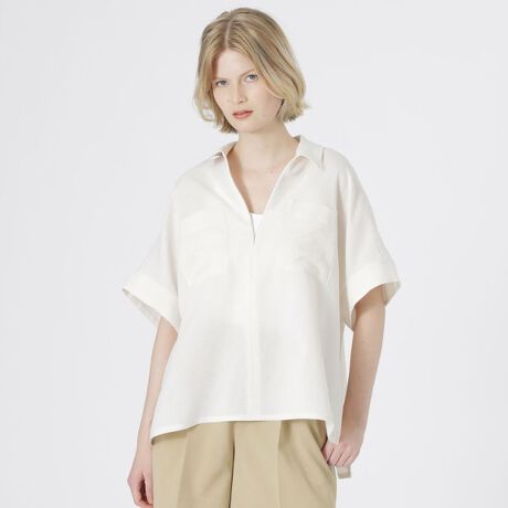 同素材のエージングドビーギャザースカート(品番:62S03560)を合わせたセットアップスタイルも可能。