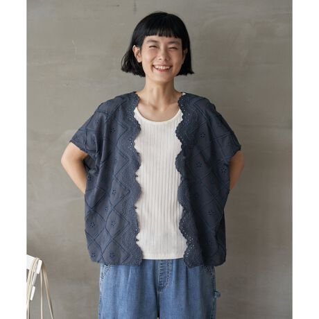 スカラップレースの刺繍部分がフリンジ使いになった表情ある一枚。