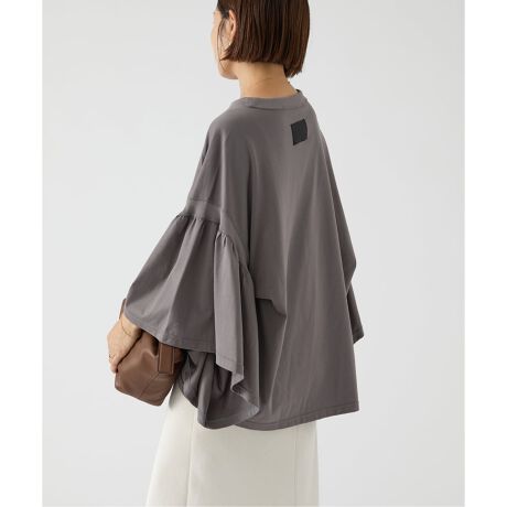 ボックスシルエットに大胆なギャザースリーブが、フェミニンでリラックス感のあるTシャツ。
