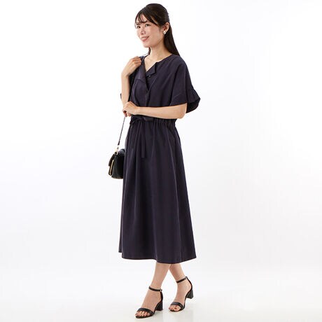 ピーチポプリン ドローストリングワンピ