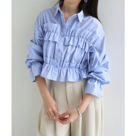 無地 ストライプ ショート丈 フリル シャツ ブラウス Freesia フリージア