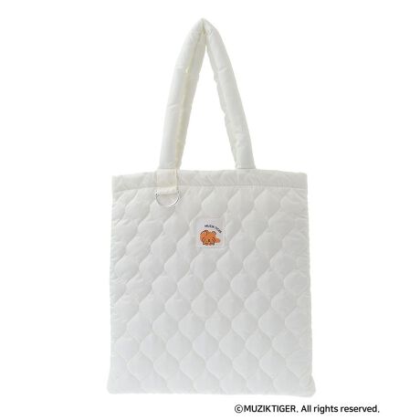 MUZIK TIGERのキャラクター入りアウトパッチがポイントのトートバッグ。ふわふわのカラーキルトにフラットなスクエアフォルムがお洒落なひと品です。クッション性のある長めのハンドルで肩掛けしやすいのも嬉しいポイント。A4サイズもすっきり入る収納力も魅力です。お気に入りのチャームを付けてアレンジ出来る便利なDカン付き。