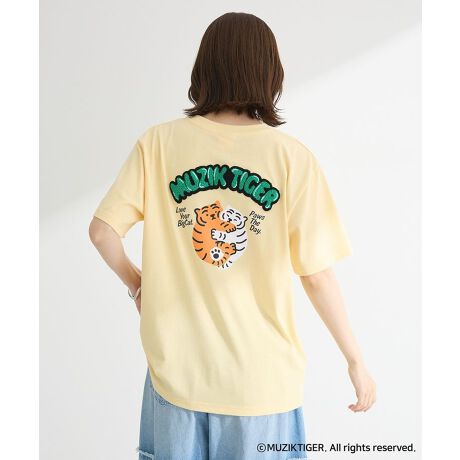 MUZIK TIGERのゆるっとしたキャラクタープリントがキュートなTシャツ。バックの立体的なさがら刺繍が目を惹くデザインです。肌触りのよいコットン混生地の快適な着用感も魅力的。程よくゆとりを持たせたベーシックシルエットでカジュアルに着こなしていただけるおすすめの一枚です。透け感[ややあり]