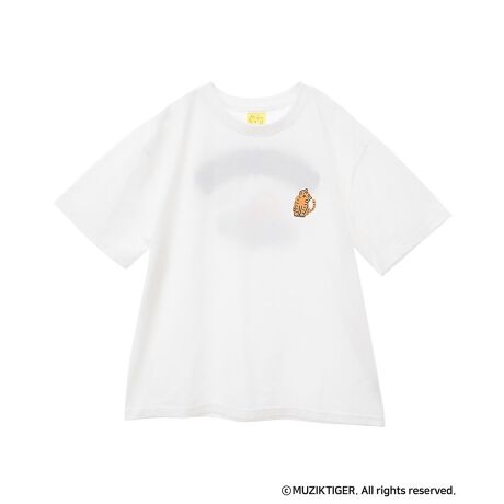 MUZIK TIGERのゆるっとしたキャラクタープリントがキュートなTシャツ。バックの立体的なさがら刺繍が目を惹くデザインです。肌触りのよいコットン混生地の快適な着用感も魅力的。程よくゆとりを持たせたベーシックシルエットでカジュアルに着こなしていただけるおすすめの一枚です。透け感[ややあり]