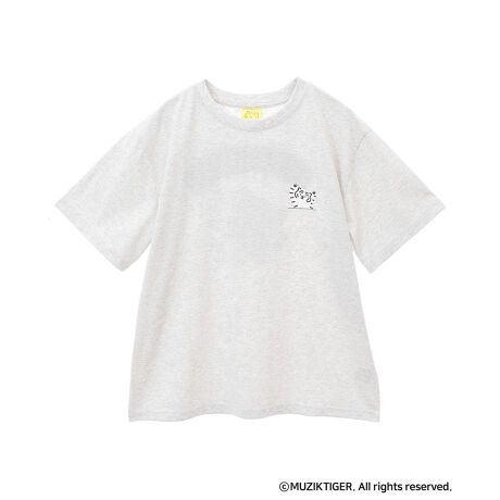 MUZIK TIGERのゆるっとしたキャラクタープリントがキュートなTシャツ。バックの立体的なさがら刺繍が目を惹くデザインです。肌触りのよいコットン混生地の快適な着用感も魅力的。程よくゆとりを持たせたベーシックシルエットでカジュアルに着こなしていただけるおすすめの一枚です。透け感[ややあり]