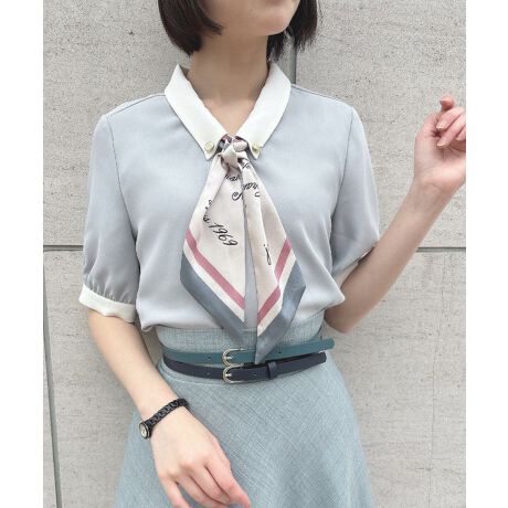 ロゴと配色ラインが効いたスカーフがフレンチなムードたっぷりのブラウス。
