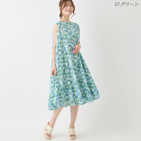 爽やかなフラワーペイントがフェミニンな雰囲気のノースリーブワンピース。サイドに施した切り替えが身幅にゆとりを持たせ、リラクシーな着心地を叶えます。動くたびに立体感がでる同柄の重なる裾がお洒落なアクセント。風通しの良いリネン混素材で気温が高い日でも快適に過ごせるおすすめのアイテムです。