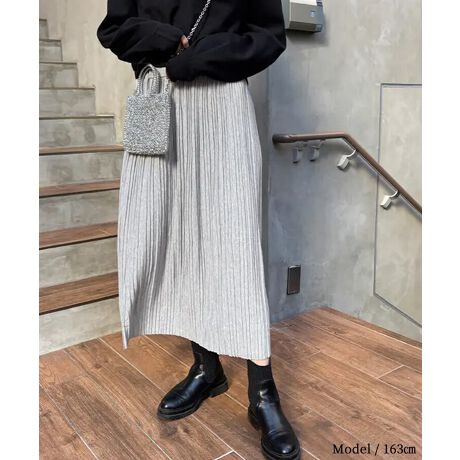 やわらかく落ち感のある素材で仕立てた細プリーツのロングスカート。縦ラインが強調されるデザインで、すっきりとした美シルエットを演出します。ウエストはゴム仕様で着心地も抜群。カジュアルなスウェットやスニーカーと合わせて、大人の抜け感スタイルが簡単に完成。オン・オフ問わず着回せる一枚です。