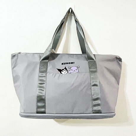 クロミのサイズアップボストンバッグです。ガバッと開いて収納力も抜群◎チャック付きで高さが拡張するので旅行やアウトドア、お買い物などにもぴったりです☆前面のポケットからキャラクターがひょっこり現れていて可愛いデザイン♪背面にはファスナー付きのポケットがあるので鍵など大切なものを収納できて便利です☆