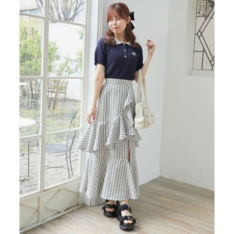 裾に向かって緩やかに広がる美ラインのフリルティアードスカート。