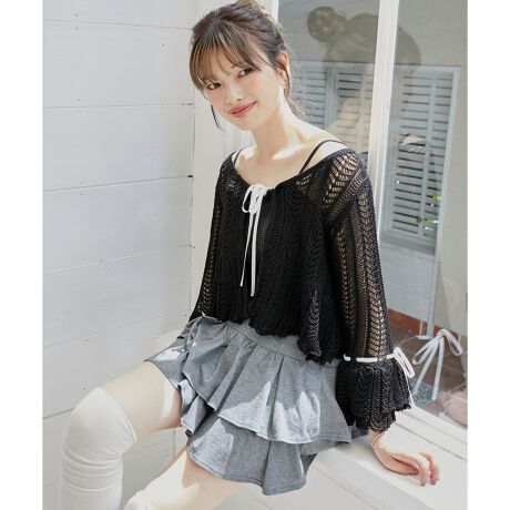 ざっくりとしたレース編みがシーズンムード漂うロマンティックキャミ&カーディガンセットが登場