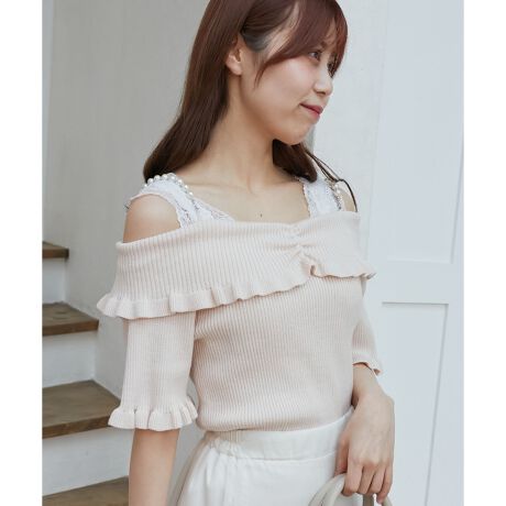 オフショルデザインで美しいシルエットを叶えるフェミニンニット♪