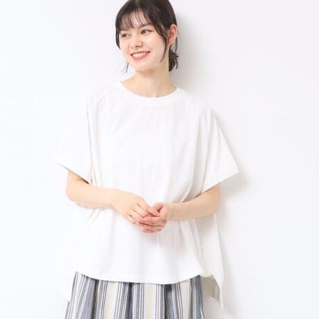 ラグランスリーブは着心地もよく体型を拾いにくい1枚です。