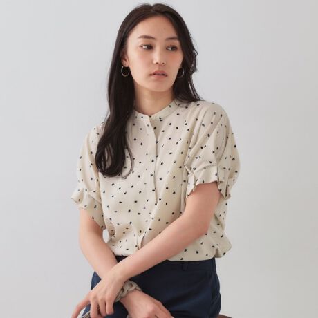 スクエアドット柄と小柄プリントアソートのタックスリーブブラウス