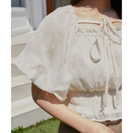 前後2wayで着用いただける仕様となっており、紐はリボン結びやチョーカーとして首にまくなど、お好みで様々な着方を楽しめるのも嬉しいポイント◎