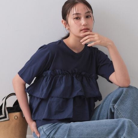 ・カットソー素材の身頃に、別布のフリルをドッキングした一枚。