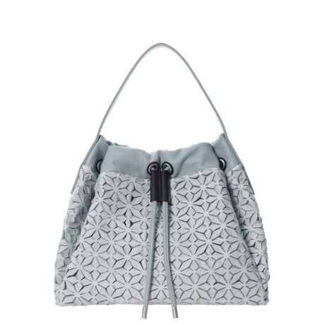 クロムなめしのやぎ革にレーザーカットを施し、最後に洗いをして仕上げました。