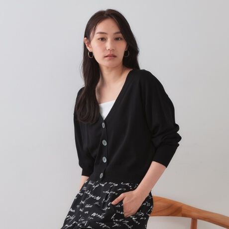 ・カジュアルなスタイリングや、冷房対策用の羽織りとしても活躍するニットカーディガンです。